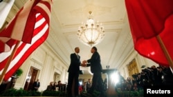 Президенты двух стран отметили, что страны, участвующие в переговорах с Ираном, твердо намерены продолжать применение санкций, пока идут переговоры. Обама выступил с аналогичным предупреждением в адрес компаний, старающихся наладить деловые отношения с Ираном.