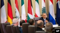 Окруженный военными из государств Ближнего Востока, Европы и Австралии, президент Обама заявил репортерам, что ситуация в Кобани демонстрирует опасность, которую «Исламское государство» представляет для Ирака и Сирии.