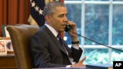 Обама и Путин также обсудили вопросы, касающиеся ликвидации сирийского химического оружия и продолжающихся усилий, направленных на достижение договоренности с Ираном, с тем чтобы можно было удостовериться в том, что иранская ядерная программа носит исключительно мирный характер.