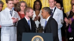 В среду, выступая в Белом доме, Обама отметил заслуги медработников, вернувшихся из Западной Африки, и похвалил тех, кто собирается туда.