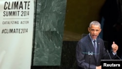 Во вторник 23 сентября, выступая на Саммите ООН по климатическим изменениям, Обама отметил, что по объему загрязняющих выбросов в атмосферу Соединенные Штаты занимают второе место в мире, вследствие чего стране необходимо взять на себя часть ответственности за ущерб, причиняемый окружающей среде. Вместе с тем, подчеркнул президент, все страны должны сообща взяться за решение проблемы изменения климата, неуклонно продолжающей обостряться.