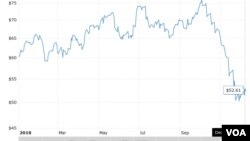 Аналитик нефтегазового сектора Михаил Крутихин в интервью «Голосу Америки» заметил, что цены на нефть, конечно, никто точно не определит. Однако, по его ощущениям, средний уровень цен, который может установиться в течение 2019 года – 60-65 долларов за баррель сырья марки Brent.