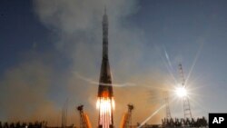 Космический корабль с олимпийским факелом на борту успешно стартовал в четверг с космодрома Байконур в Казахстане. Его запуск транслировался в прямом эфире телевидением НАСА.