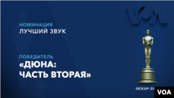 Саунд-команда "Дюны" выигрывает в номинации "Лучший звук". Сиквел повторил успех ленты-предшественницы, также забравшей награду в этой номинации три года назад. Съемочной группе предстояла еще более масштабная работа по воспроизведению того, как, по их представлению, могли шуметь гладиаторская арена и пустынные баталии, какие звуки издавали пески планеты Арракис и их самый впечатляющий обитатель — червь Шаи-Хулуд.