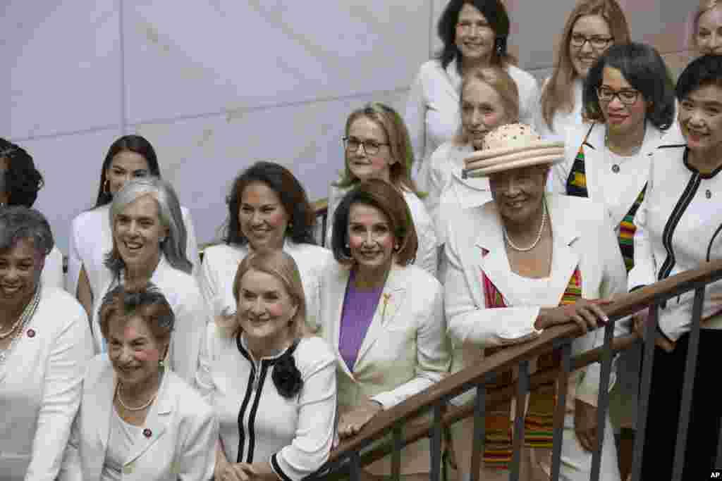 Эта инициатива – отсылка к движению суфражисток, которые в конце 19- начале 20 века боролись за предоставление женщинам избирательных прав. Среди конгрессвуман, которые приняли участие в фотосессии – спикер Палаты представителей Нэнси Пелоси.