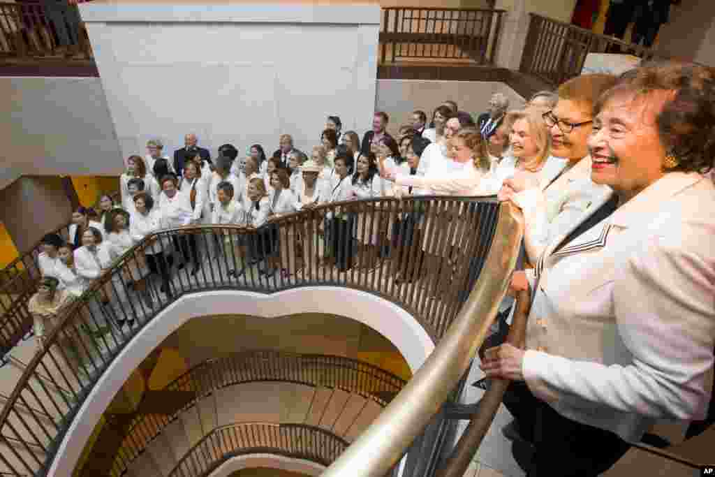 В акции приняли участие не только женщины-законодатели. Конгрессмен Дин Филлипс из Миннесоты также появился в здании в белом костюме. Кроме того, лидер демократов в Палате представителей Стени Хойер раздавал конгрессменам белые ленточки.