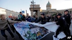 Активистам «Демократического Петербурга» удалось выстроить цепочку одиночных пикетов лишь на подступах к площади Восстания. При этом проходящие мимо горожане, как правило, оставляли акцию гражданских активистов без внимания. Наталья Цымбалова – дна из заявительниц акции – рассказала корреспонденту «Голоса Америки», что некоторые из пикетчиков подверглись нападению со стороны прохожих.
