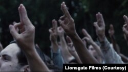 В фильме этим знаком жители Дистриктов, угнетаемые тоталитарным режимом, выражали солидарность и уважение тем, кто поддерживает движение сопротивления. Жест использовался и как знак прощания с теми, кто погиб в результате карательных действий властей.