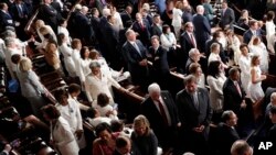 Райан зачитал имена нескоььких конгрессменов, которые составят почетный экскорт президента. Тоже самое делает Пенс, он назвал имена сенаторов.