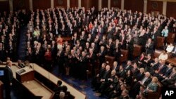 Спикер Райан торжественно представляет президента Соединенных Штатов. Вновь овация, но хлопают не все.