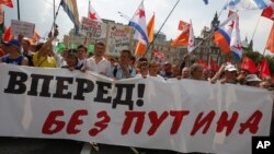 Несмотря на грозовые тучи над Москвой и обыски, проведенные накануне полицией на квартирах лидеров оппозиции, десятки тысяч людей вышли на митинг протеста, заполнив Бульварное кольцо.