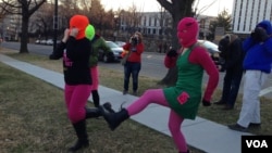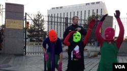 В среду, к годовщине скандального «панк-молебна» группы Pussy Riot в храме Христа Спасителя в Москве, активисты (в основном активистки) нескольких правозащитных организаций провели напротив посольства РФ в Вашингтоне акцию протеста в знак солидарности с тремя участницами группы.