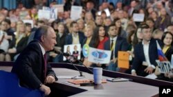 МОСКВА – Традиционная «большая» пресс-конференция президента РФ Владимира Путина собрала рекордное число журналистов, но, по оценке опрошенных Русской службой «Голоса Америки» экспертов, не стала откровением и не принесла ничего нового или неожиданного.