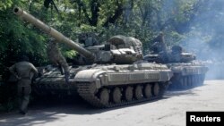 В понедельник жительница города Новоазовск на юго-востоке Украины заявила, что видела, как к городу приблизилась колонна бронетехники и открыла огонь.