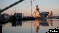 Москва заявила, что получено приглашение принять поставку первого из двух французских авианосцев, сделка о продаже которых была поставлена под вопрос в связи с напряженностью в отношениях между Россией и Западом из-за кризиса в Украине и введенными против Москвы санкциями.