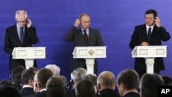 Президент Путин принял руководителей Евросоюза, собрав первый саммит после вступления в должность президента. В саммите приняли участие председатель Европейского совета Херман Ван Ромпей, президент Еврокомиссии Жозе Мануэль Баррозу и верховный представитель ЕС по иностранным делам и политике безопасности Кэтрин Эштон.
