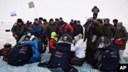 Спускаемый аппарат приземлился в заснеженной степи примерно в 150 километрах к юго-востоку от города Жезказгана в 5:31 по московскому времени.