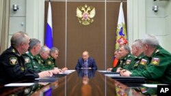 Во вторник вечером контролируемые Кремлем телеканал НТВ и Первый канал показали сюжет о встрече президента Путина с руководством Минобороны в резиденции президента в Красной поляне в Сочи.