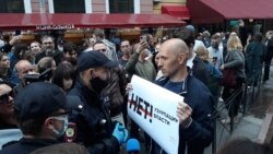 Мужчина представился, как Ишреф Ильяс Исфиньяр-оглу и сказал: «Мой народ несогласен с этими поправками. Нас прессуют и в Крыму, и, практически, везде. Изыскивают разные возможности, чтобы подкинуть какию-нибудь литературу, чтобы потом обвинить в экстремизме и терроризме, арестовать. А затем люди пропадают без вести. Мы, естественно, против этого. А здесь – мирный протест, без оружия. Мы выражаем свое несогласие с политикой российской власти».