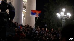 После заявления Вучича несколько тысяч человек начали собираться перед зданием парламента на центральной площади Белграда.
