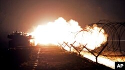 Минобороны не сообщило точную дальность полета ракет, однако распространило видеоролик, на котором ракеты запускаются с подлодки и с эсминца и поражают цели на суше.