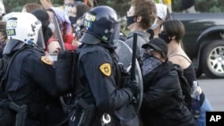 По словам полиции, протестующие применяли против офицеров перцовые баллончики. По меньшей мере один сотрудник был ранен и доставлен в больницу. Как минимум двое демонстрантов арестованы.