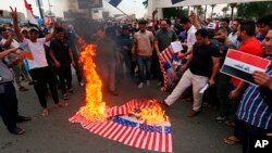 Демонстранты размахивали национальными флагами и выкрикивали слоганы против Соединенных Штатов, которые возглавляют коалицию по борьбе с «Исламским государством» в Ираке и Сирии.