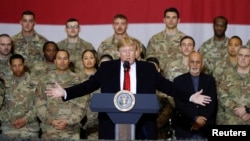 На базе Баграм Трамп провел двустороннюю встречу с президентом Афганистана Ашрафом Гани и выступил перед американскими военными.