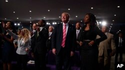 В первом ряду рядом с Трампом сидела Омароса Маниго, ранее выступавшая в его телевизионном реалити-шоу. Маниго помогает Трампу в налаживании связей с афроамериканской общиной.