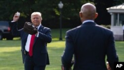 До этого на своем брифинге в четверг Трамп объявлял, что в первый день игр Главной лиги бейсбола 15 августа он приедет на стадион Yankee, чтобы совершить первую подачу.