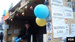 «У нас нет другого пути и возможности начать реформы в Украине. Мы больше двадцати лет топчемся на месте. Сегодняшний разворот официального Киева в сторону Кремля как будто бы говорит нам, что украинцы зря боролись за независимость»,– говорит Русской службе «Голоса Америки» волонтер Николай, который разливает чай всем желающим.