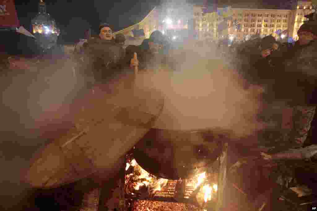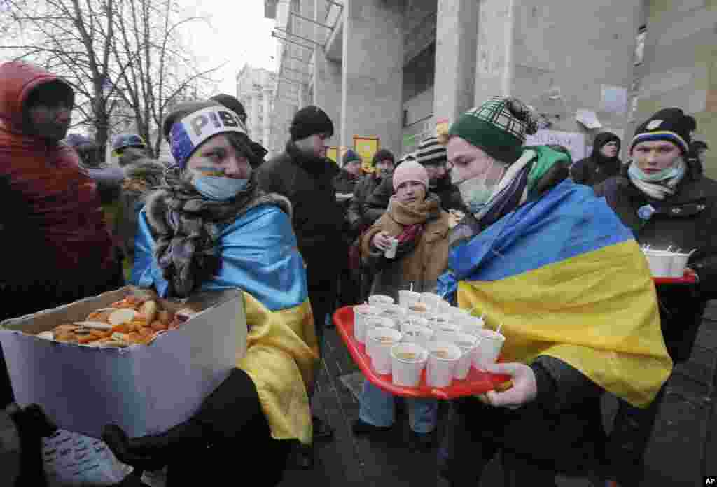Украинцы, передавая еду в авоськах, третью неделю содержат многотысячный протест в центре Киева
