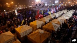 КИЕВ – На Майдане Незалежности активисты складируют дрова, обтягивают колючей проволокой металлические ограды и устанавливают утепленные военные палатки.