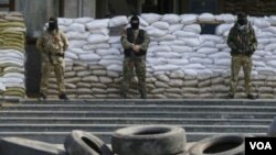 Вооруженные мужчины патрулируют улицы. Жители укрепляют баррикады. Несмотря на призывы всех участников женевских переговоров, демонстранты отказываются покидать оккупированные здания, настаивая, что они прошли точку невозврата.