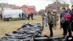 Российских военных обвиняют в убийстве мирных жителей в киевском пригороде Буча и в неоднократных атаках на гражданскую инфраструктуру, включая больницы и театр в Мариуполе, который использовался сотнями мирных жителей в качестве убежища.