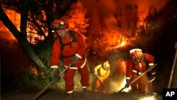 Губернатор штата Джерри Браун в воскресенье заново объявил чрезвычайное положение в двух округах, пострадавших от пожаров. Указ предусматривает мобилизацию военнослужащих Национальной гвардии, которые призваны помочь тысячам человек, вынужденных покинуть свои дома.