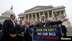 Лидеры республиканского большинства в Палате представителей работают над предложением, которое бы включало в себя повышение лимита госдолга, чтобы правительство США смогло платить по счетам еще шесть недель. Как стало известно, это предложение может также включать условие – возобновление работы правительства может состояться в обмен на сокращение расходов, которые должен предложить президент.