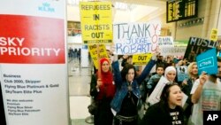 Многочисленные иски против иммиграционного указа были поданы в окружные суды 29 января, через два дня после того, как указ был подписан, судья нью-йоркского окружного суда на 7 дней приостановил действие президентского указа в общенациональном масштабе. 6 февраля судья в штате Вашингтон заблокировал указ, что позволило беженцам и гражданам стран, подпавших под запрет, въехать в США.