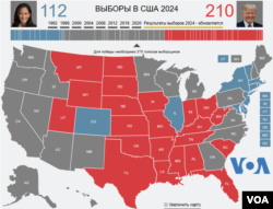 Согласно оценкам «Голоса Америки», Дональд Трамп побеждает в штатах Канзас и Айова. Камала Харрис получает один голос выборщиков в штате Мэн.