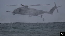 Считается, что два транспортных вертолета CH-53 столкнулись в четверг вечером в четырех километрах от берегов Оаху.