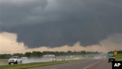 По меньшей мере пять человек получили травмы, а многие местные жители поспешили в укрытия – через десять дней после того как мощный торнадо унес жизни 24 человек в Оклахоме.