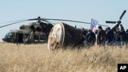 Возвращающийся с МКС российско-американский экипаж в пятницу благополучно приземлился в степи Казахстана, встреченный с особыми мерами предосторожности на фоне пандемии коронавируса.