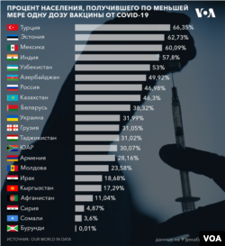 Замыкают рейтинг Демократическая Республика Конго и Бурунди – в этих странах одну дозу получили меньше одного процента населения.
