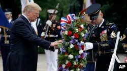 В понедельник на Арлингтонском кладбище близ Вашингтона прошла торжественная церемония по случаю Дня поминовения. В церемонии принял участие президент США Дональд Трамп.