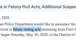Стоит отметить, впрочем, что в минувший понедельник полиция Вашингтона распространила пресс-релиз с такой формулировкой: в нём шла речь об арестах граждан, обвиняемых именно в "felony riot acts", то есть в "участии в бунте/мятеже".