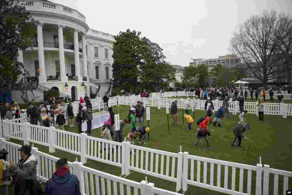 По традиции, которая началась 140 лет назад, на лужайку перед Белым домом приглашают детей, которых развлекают высшие руководители США